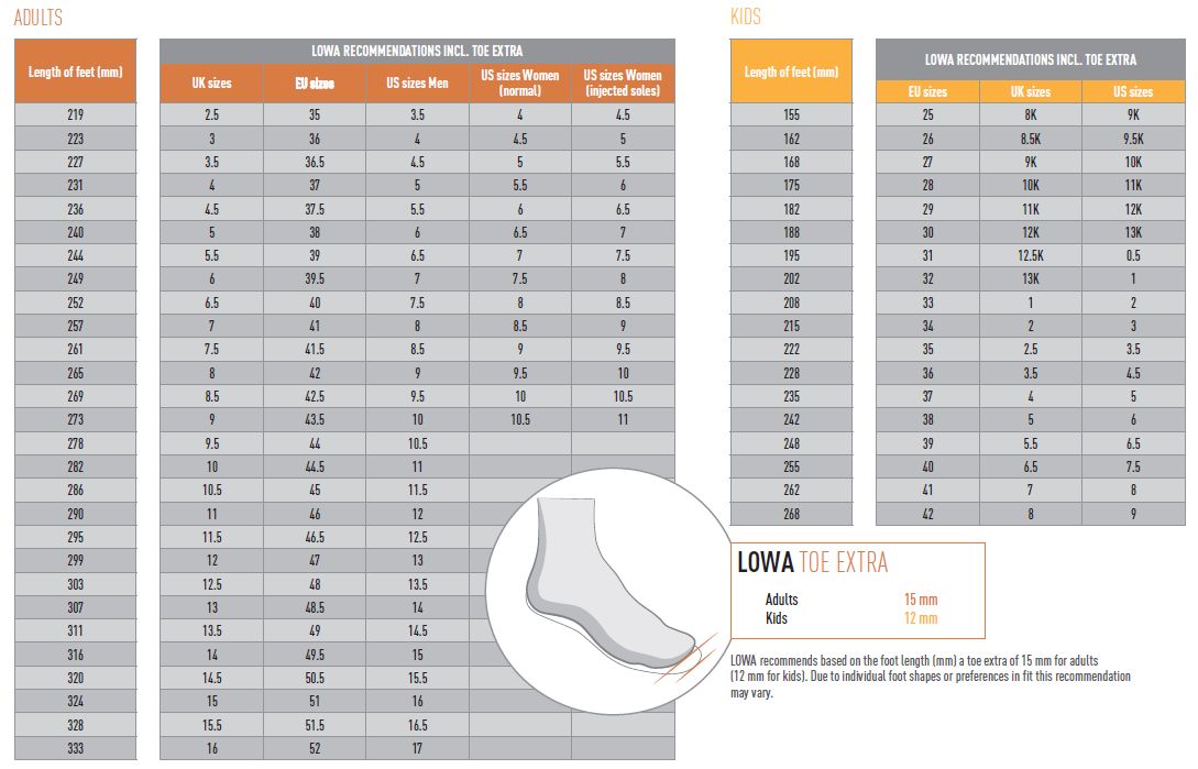 Størrelsesguide Lowa